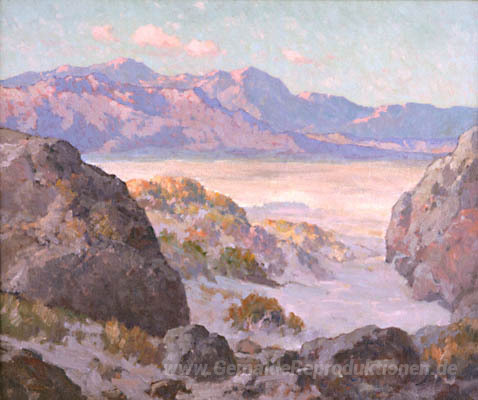 Wir bieten Ihnen eine handgefertigte Reproduktion auf Leinwand des berühmten Kunstwerks 'Wüste und Berge' von Maurice Braun, aus dem Reproduktionsmuseum.