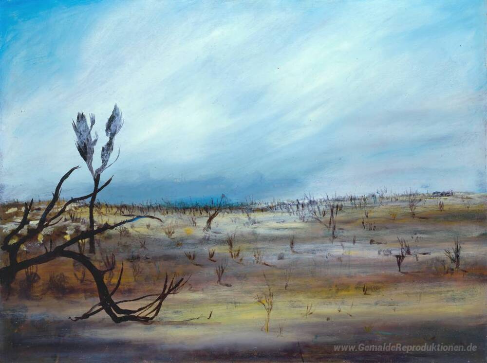 Wir bieten Ihnen eine handgefertigte Reproduktion auf Leinwand des berühmten Kunstwerks 'Wüstensturm' von Sidney Nolan, aus dem Reproduktionsmuseum.
