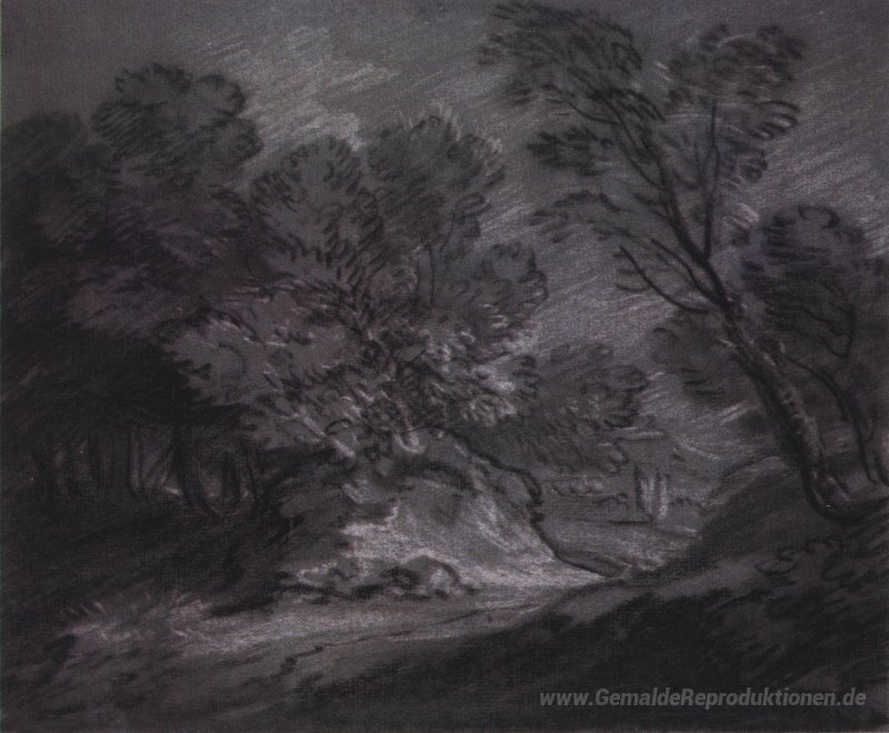 Wir bieten Ihnen eine handgefertigte Reproduktion auf Leinwand des berühmten Kunstwerks 'Wald landsape mit Berg' von Thomas Gainsborough, aus dem Reproduktionsmuseum.