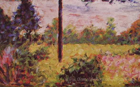 Wir bieten Ihnen eine handgefertigte Reproduktion auf Leinwand des berühmten Kunstwerks 'Wald von Barbizon' von Georges Seurat, aus dem Reproduktionsmuseum.