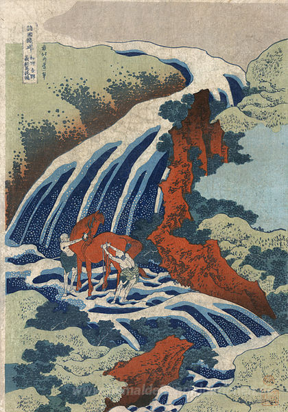 Wir bieten Ihnen eine handgefertigte Reproduktion auf Leinwand des berühmten Kunstwerks 'Wasserfall bei Yoshino in Washu' von Katsushika Hokusai, aus dem Reproduktionsmuseum.
