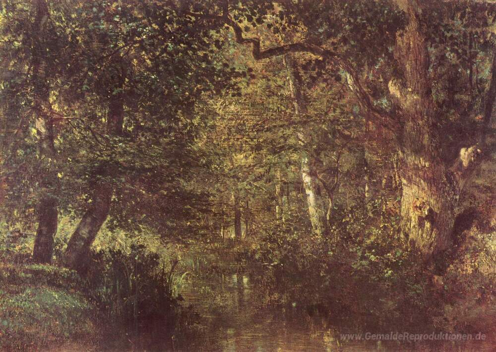 Wir bieten Ihnen eine handgefertigte Reproduktion auf Leinwand des berühmten Kunstwerks 'Wasserlauf in den Wäldern' von Constant Troyon, aus dem Reproduktionsmuseum.