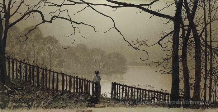 Wir bieten Ihnen eine handgefertigte Reproduktion auf Leinwand des berühmten Kunstwerks 'Waterloo See Roundhay, Leeds Park' von John Atkinson Grimshaw, aus dem Reproduktionsmuseum.