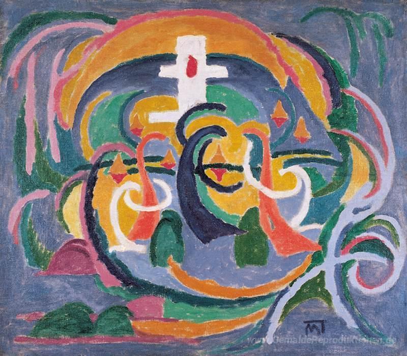 Wir bieten Ihnen eine handgefertigte Reproduktion auf Leinwand des berühmten Kunstwerks 'Weißes Kreuz' von Janos Mattis-Teutsch, aus dem Reproduktionsmuseum.