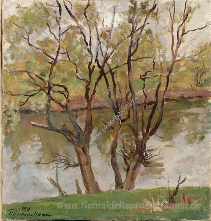 Wir bieten Ihnen eine handgefertigte Reproduktion auf Leinwand des berühmten Kunstwerks 'Weiden am Fluss Protva' von Pyotr Konchalovsky, aus dem Reproduktionsmuseum.