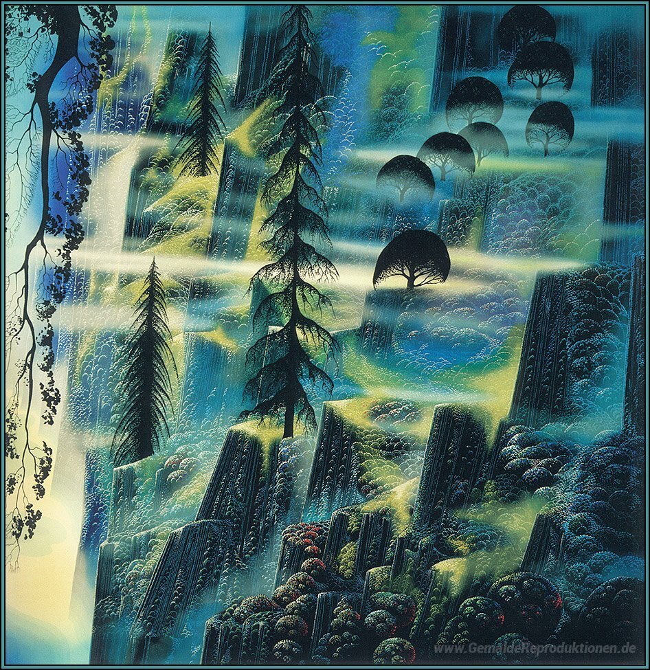 Willkommen in der faszinierenden Welt der Ölgemälde, wo jedes Werk eine Geschichte erzählt und Emotionen weckt. Besonders hervorzuheben ist das beeindruckende Gemälde Where Eagles Fly des renommierten Künstlers Eyvind Earle. Mit seinem einzigartigen Stil verbindet Earle traditionelle Techniken mit modernen Einflüssen und kreiert eindrucksvolle Landschaften, die sowohl mit ihrer Farbpalette als auch mit ihrer Detailgenauigkeit überzeugen.