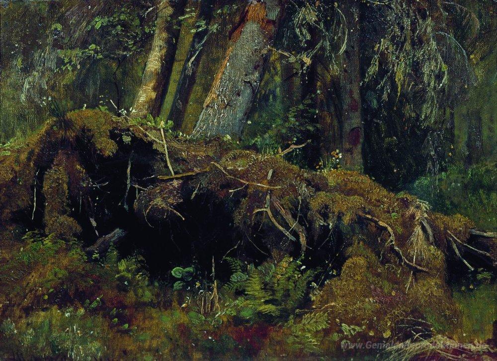 Wir bieten Ihnen eine handgefertigte Reproduktion auf Leinwand des berühmten Kunstwerks 'Wind umgestürzte Bäume' von Ivan Shishkin, aus dem Reproduktionsmuseum.