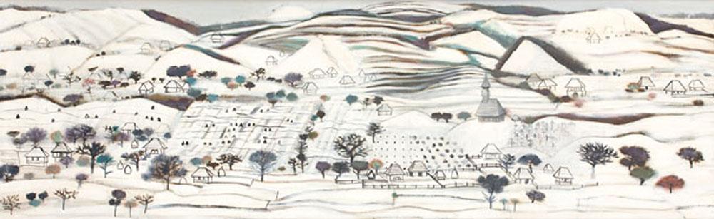 Wir bieten Ihnen eine handgefertigte Reproduktion auf Leinwand des berühmten Kunstwerks 'Winter am Cenade' von Viorel Marginean, aus dem Reproduktionsmuseum.