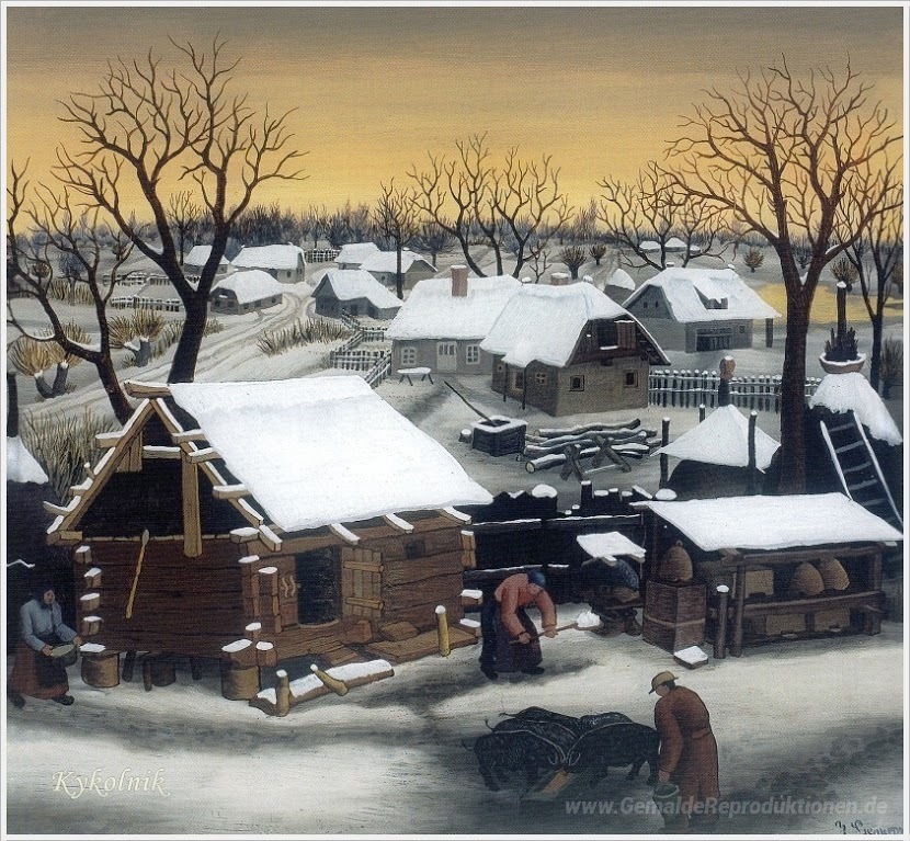 Wir bieten Ihnen eine handgefertigte Reproduktion auf Leinwand des berühmten Kunstwerks 'Winter' von Ivan Generalic, aus dem Reproduktionsmuseum.
