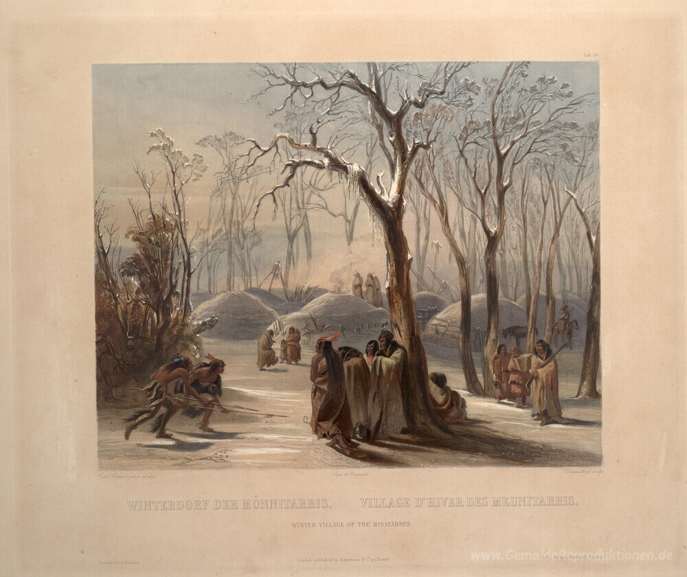 Wir bieten Ihnen eine handgefertigte Reproduktion auf Leinwand des berühmten Kunstwerks 'Winter-Dorf der Minatarres' von Karl Bodmer, aus dem Reproduktionsmuseum.