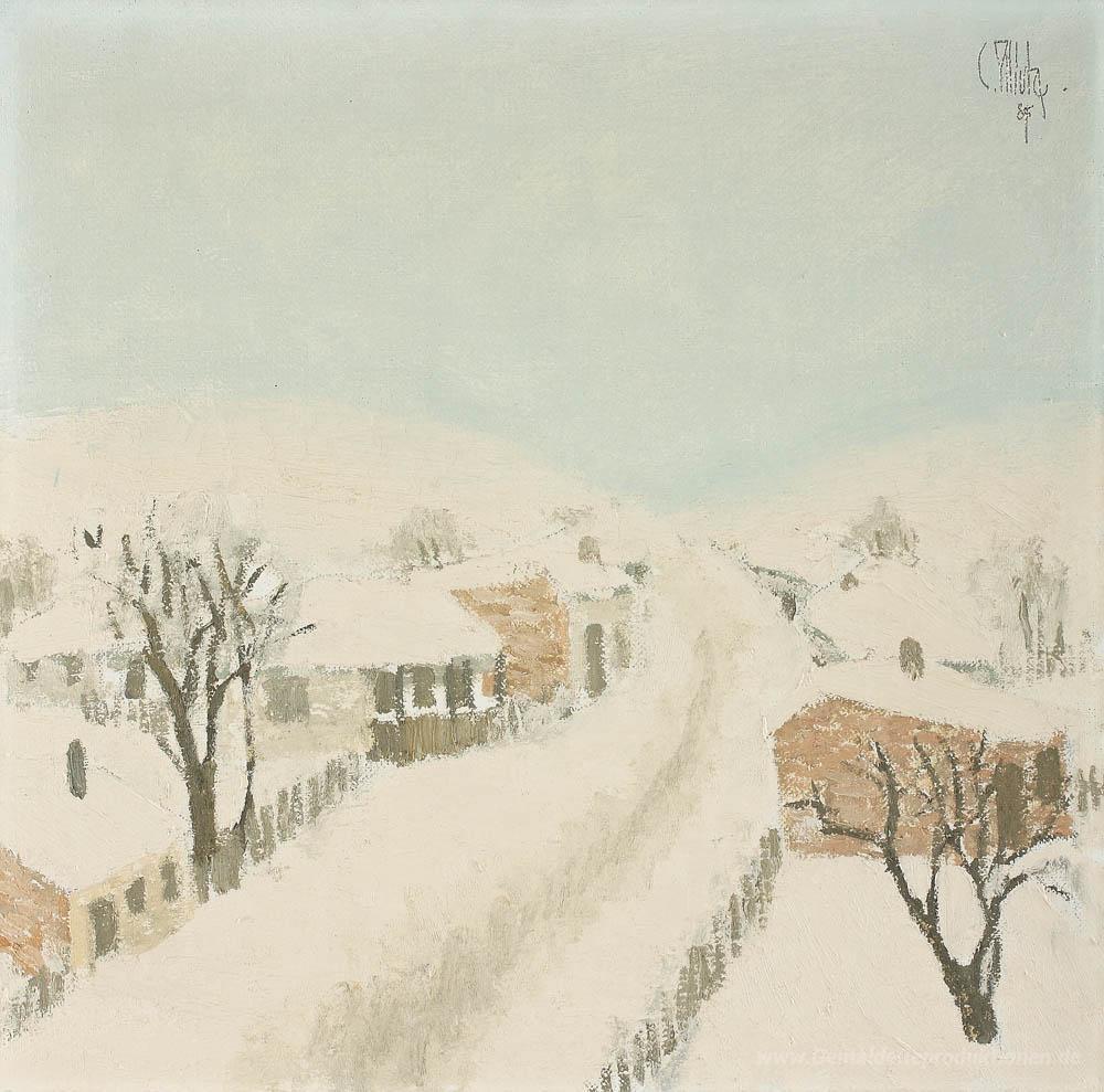 Wir bieten Ihnen eine handgefertigte Reproduktion auf Leinwand des berühmten Kunstwerks 'Winterlandschaft' von Constantin Piliuta, aus dem Reproduktionsmuseum.