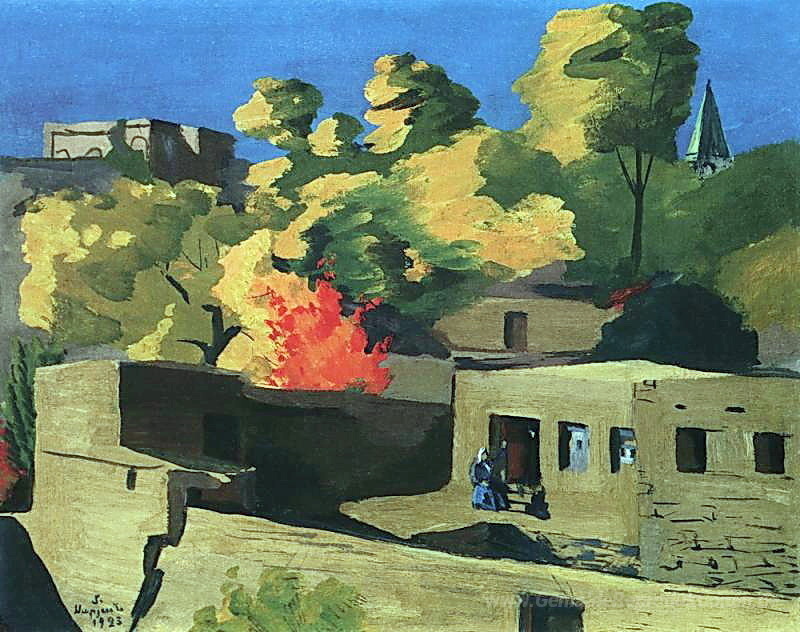 Wir bieten Ihnen eine handgefertigte Reproduktion auf Leinwand des berühmten Kunstwerks 'Yerevan' von Martiros Saryan, aus dem Reproduktionsmuseum.