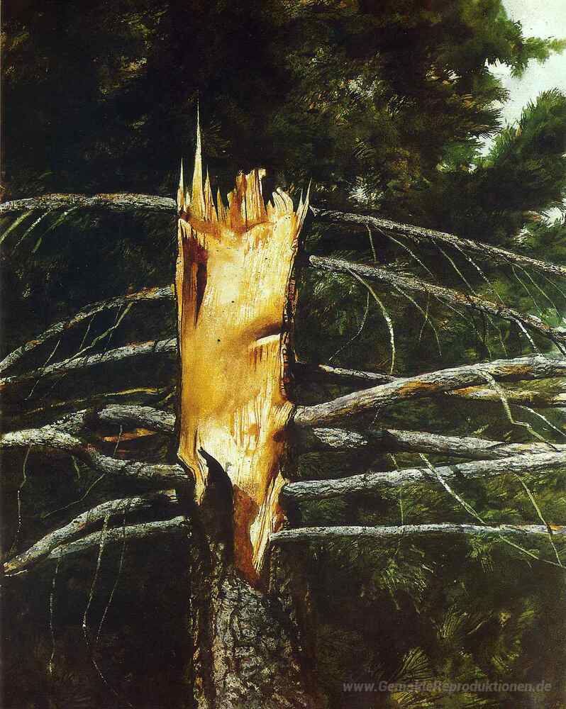 Wir bieten Ihnen eine handgefertigte Reproduktion auf Leinwand des berühmten Kunstwerks 'Zerrissen Spruce' von Jamie Wyeth, aus dem Reproduktionsmuseum.