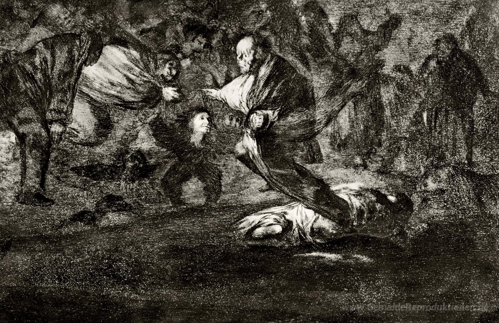 Wir bieten Ihnen eine handgefertigte Reproduktion auf Leinwand des berühmten Kunstwerks 'Absurdität Beerdigung' von Francisco Goya, aus dem Reproduktionsmuseum.