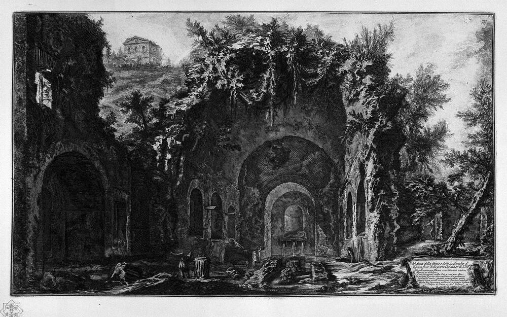 Wir bieten Ihnen eine handgefertigte Reproduktion auf Leinwand des berühmten Kunstwerks 'Ansicht des Tempels von Camene' von Giovanni Battista Piranesi, aus dem Reproduktionsmuseum.