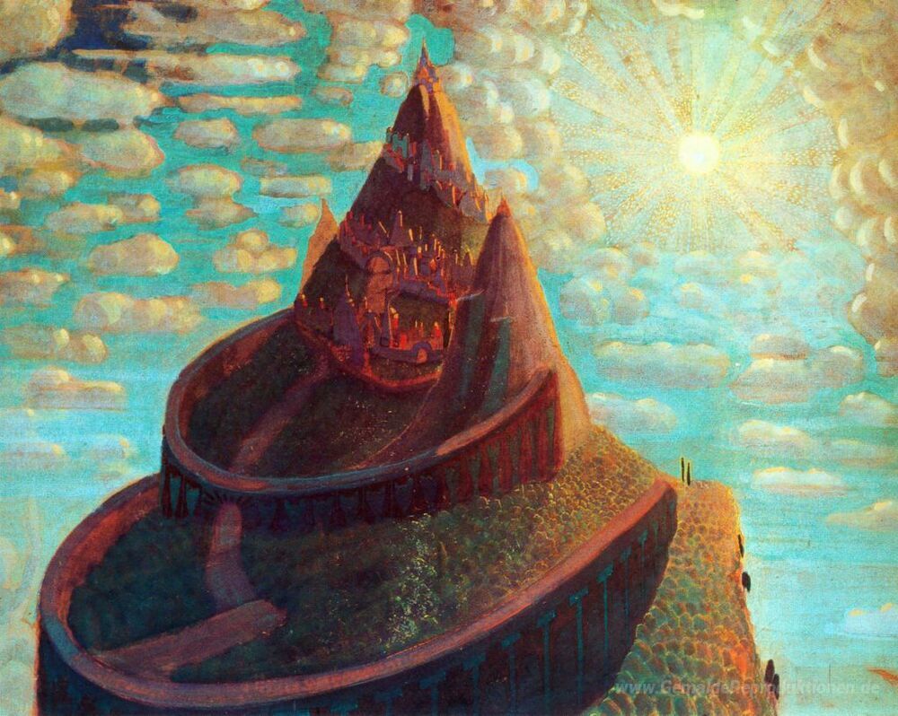 Wir bieten Ihnen eine handgefertigte Reproduktion auf Leinwand des berühmten Kunstwerks 'Castle (Schloss Märchen)' von Mikalojus Ciurlionis, aus dem Reproduktionsmuseum.