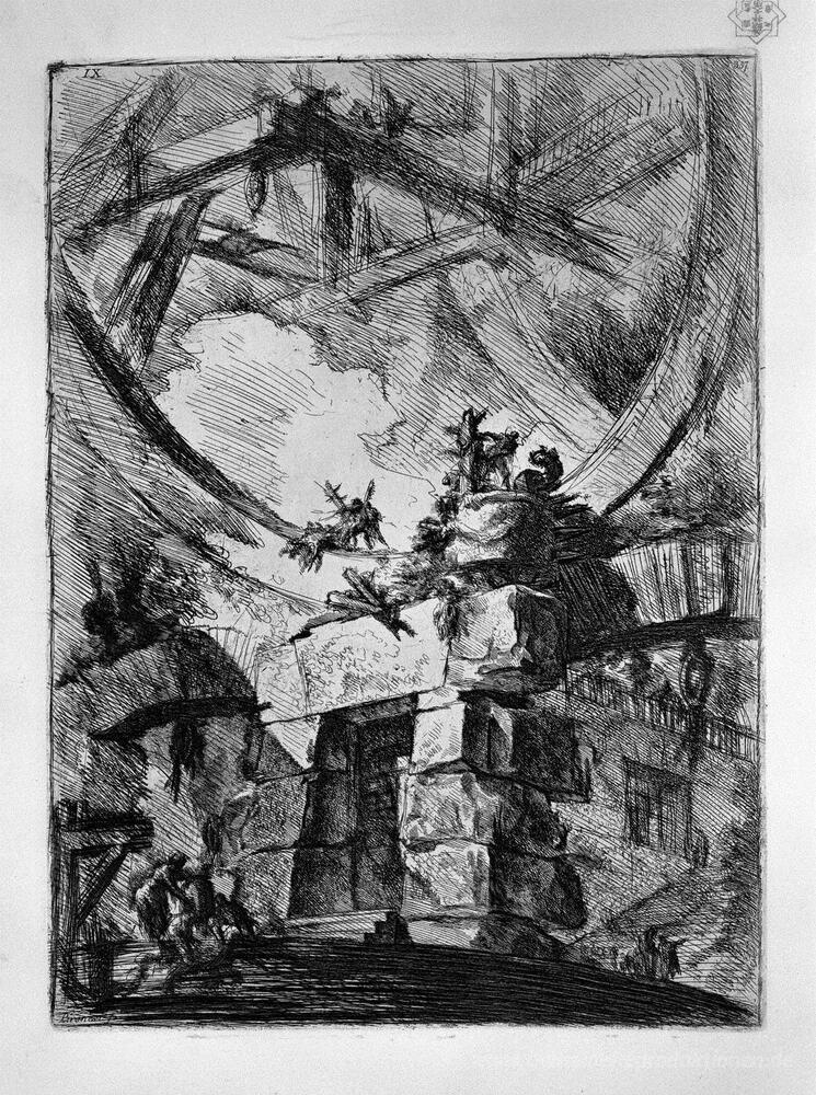 Willkommen in unserer exklusiven Welt der Ölgemälde, in der Kunst und Eleganz aufeinandertreffen. Entdecken Sie das faszinierende Werk Der Giant Wheel, geschaffen von dem renommierten Künstler Giovanni Battista Piranesi. Bekannt für seine meisterhafte Fähigkeit, Dramatik und Detailverliebtheit miteinander zu verbinden, lädt Piranesi den Betrachter auf eine visuelle Reise durch komplexe architektonische Strukturen und eindrucksvolle Landschaften ein.