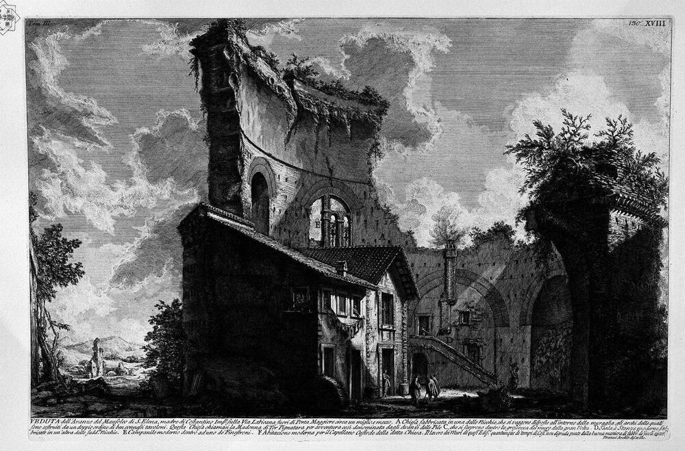 Wir bieten Ihnen eine handgefertigte Reproduktion auf Leinwand des berühmten Kunstwerks 'Die römische Altertümer, t. 3, Teller XVIII. Ein Blick auf die g' von Giovanni Battista Piranesi, aus dem Reproduktionsmuseum.