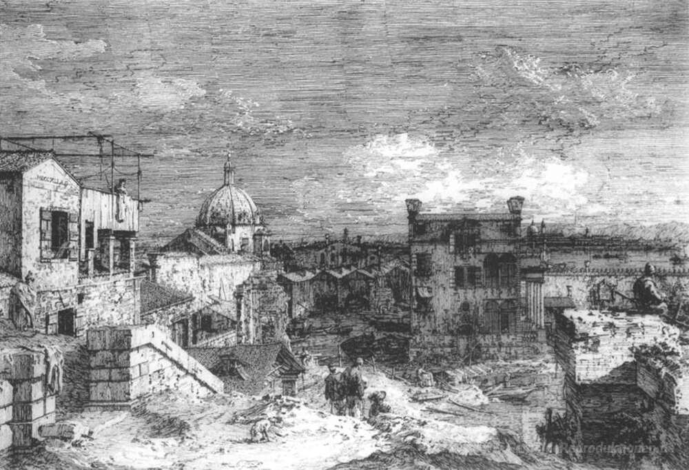 Wir bieten Ihnen eine handgefertigte Reproduktion auf Leinwand des berühmten Kunstwerks 'Imaginary Ansicht von Venedig' von Canaletto, aus dem Reproduktionsmuseum.