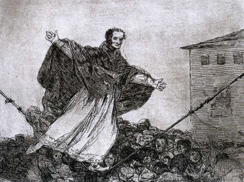 Wir bieten Ihnen eine handgefertigte Reproduktion auf Leinwand des berühmten Kunstwerks 'Möge der Seilbruch' von Francisco Goya, aus dem Reproduktionsmuseum.