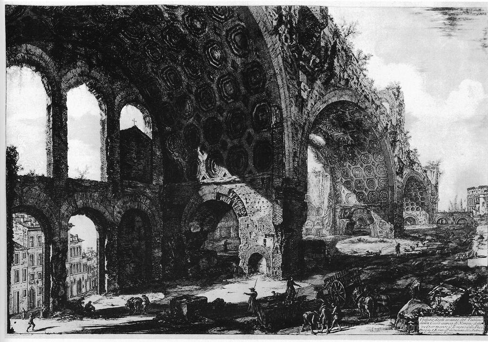 Wir bieten Ihnen eine handgefertigte Reproduktion auf Leinwand des berühmten Kunstwerks 'Vedute di Roma' von Giovanni Battista Piranesi, aus dem Reproduktionsmuseum.