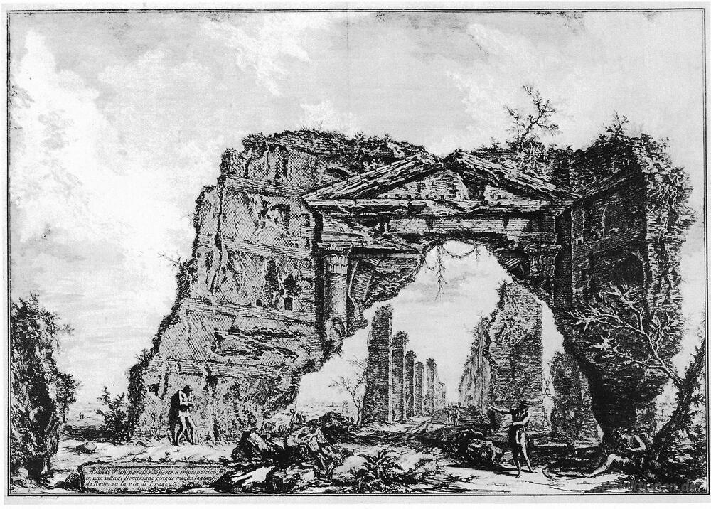 Wir bieten Ihnen eine handgefertigte Reproduktion auf Leinwand des berühmten Kunstwerks 'Vedute di Roma' von Giovanni Battista Piranesi, aus dem Reproduktionsmuseum.