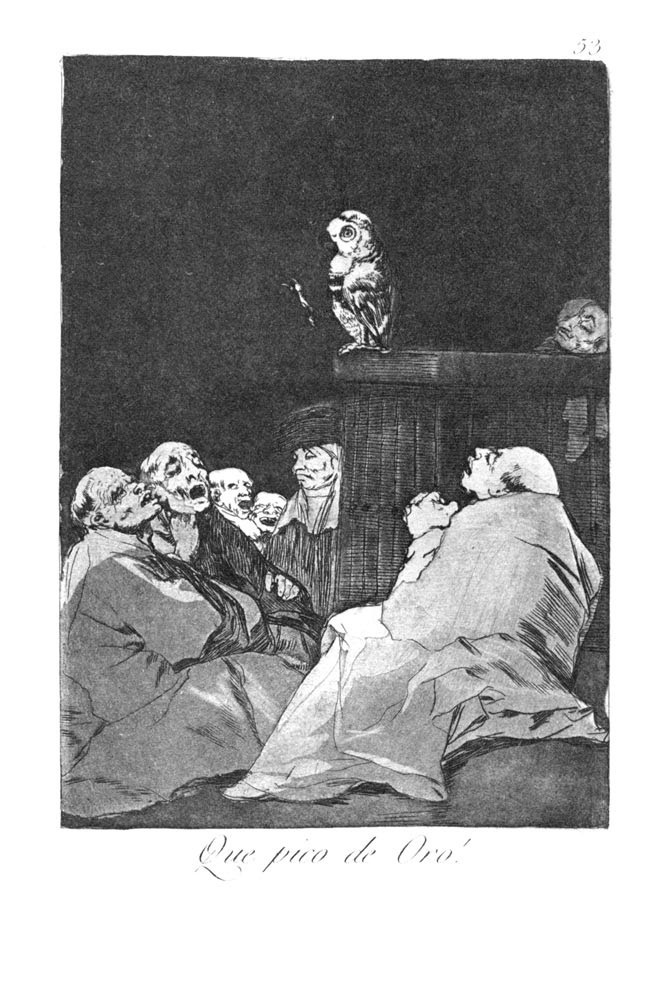 Wir bieten Ihnen eine handgefertigte Reproduktion auf Leinwand des berühmten Kunstwerks 'Was für ein goldener Schnabel!' von Francisco Goya, aus dem Reproduktionsmuseum.