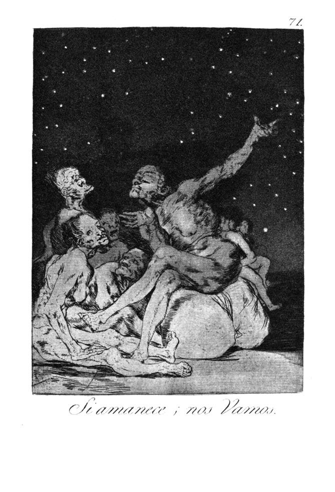 Wir bieten Ihnen eine handgefertigte Reproduktion auf Leinwand des berühmten Kunstwerks 'Wenn der Tag anbricht werden wir aus sein' von Francisco Goya, aus dem Reproduktionsmuseum.