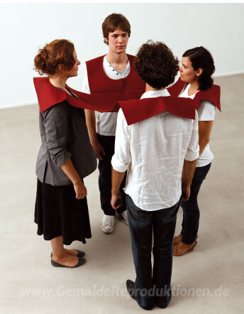 Wir bieten Ihnen eine handgefertigte Reproduktion auf Leinwand des berühmten Kunstwerks 'Kreuz Verbindungsform. Element n ° 36 1.Werksatz' von Franz Erhard Walther, aus dem Reproduktionsmuseum.
