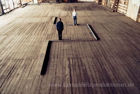 Wir bieten Ihnen eine handgefertigte Reproduktion auf Leinwand des berühmten Kunstwerks 'Stride Plinthes. Fünf Abschnitte, drei Stufen' von Franz Erhard Walther, aus dem Reproduktionsmuseum.