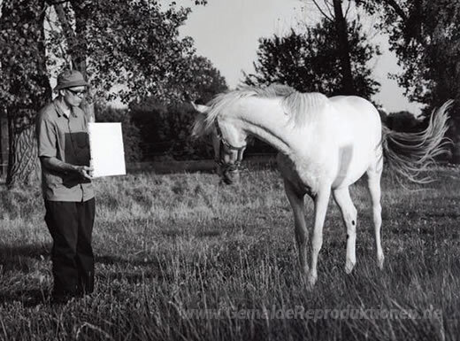 Wir bieten Ihnen eine handgefertigte Reproduktion auf Leinwand des berühmten Kunstwerks 'Untitled (Pferd), Invisible Painting / Energie' von Bruno Jakob, aus dem Reproduktionsmuseum.