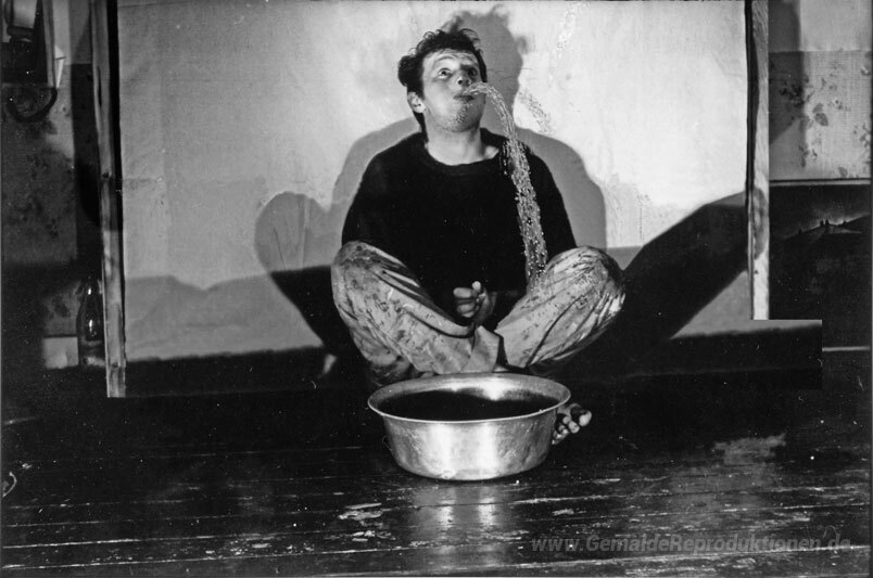 Wir bieten Ihnen eine handgefertigte Reproduktion auf Leinwand des berühmten Kunstwerks 'Versuchen Sie, eine Skulptur sein' von Franz Erhard Walther, aus dem Reproduktionsmuseum.