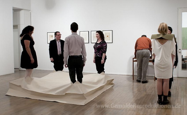 Wir bieten Ihnen eine handgefertigte Reproduktion auf Leinwand des berühmten Kunstwerks 'Zeit Platz Dauer nder Relation' von Franz Erhard Walther, aus dem Reproduktionsmuseum.