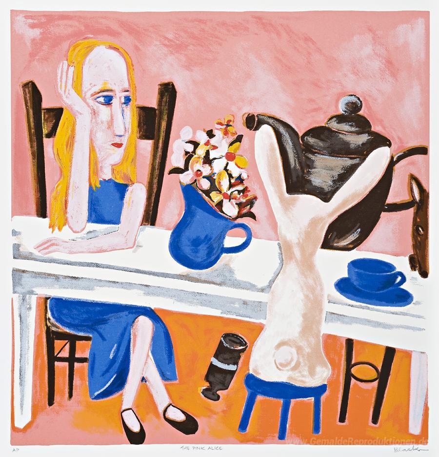 Wir bieten Ihnen eine handgefertigte Reproduktion auf Leinwand des berühmten Kunstwerks 'Alice' von Charles Blackman, aus dem Reproduktionsmuseum.