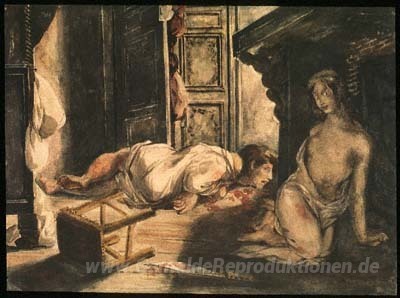 Wir bieten Ihnen eine handgefertigte Reproduktion auf Leinwand des berühmten Kunstwerks 'Bride of Lammermoor Die' von Eugene Delacroix, aus dem Reproduktionsmuseum.