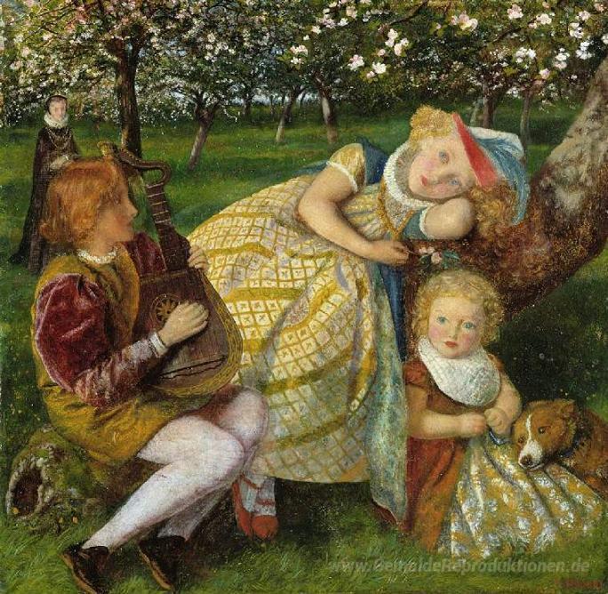 Wir bieten Ihnen eine handgefertigte Reproduktion auf Leinwand des berühmten Kunstwerks 'Des Königs Orchard' von Arthur Hughes, aus dem Reproduktionsmuseum.