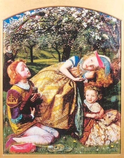 Wir bieten Ihnen eine handgefertigte Reproduktion auf Leinwand des berühmten Kunstwerks 'Des Königs Orchard' von Arthur Hughes, aus dem Reproduktionsmuseum.
