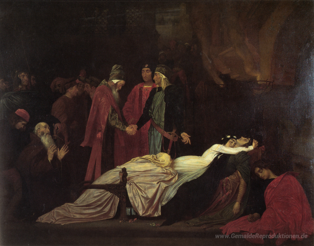 Wir bieten Ihnen eine handgefertigte Reproduktion auf Leinwand des berühmten Kunstwerks 'Die Überleitung der Montagues und Capulets' von Frederic Leighton, aus dem Reproduktionsmuseum.