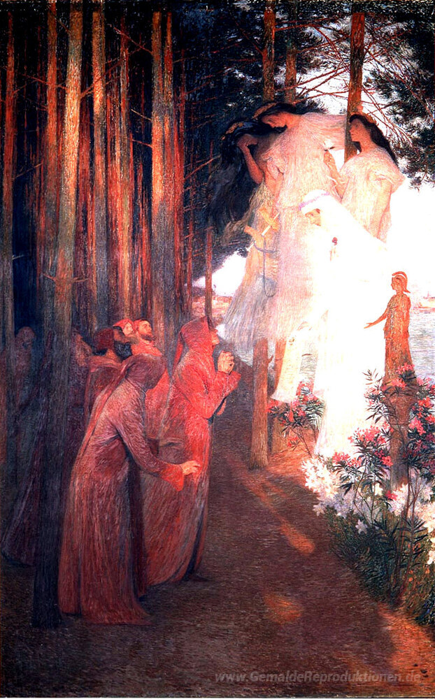 Wir bieten Ihnen eine handgefertigte Reproduktion auf Leinwand des berühmten Kunstwerks 'Die Entstehung des Clemence Isaure mit Troubadours' von Henri Martin, aus dem Reproduktionsmuseum.