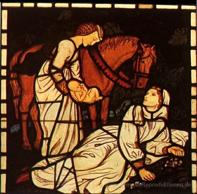 Wir bieten Ihnen eine handgefertigte Reproduktion auf Leinwand des berühmten Kunstwerks 'Die Geburt von Tristan, "von der Geschichte von Tristan und Isol' von Arthur Hughes, aus dem Reproduktionsmuseum.