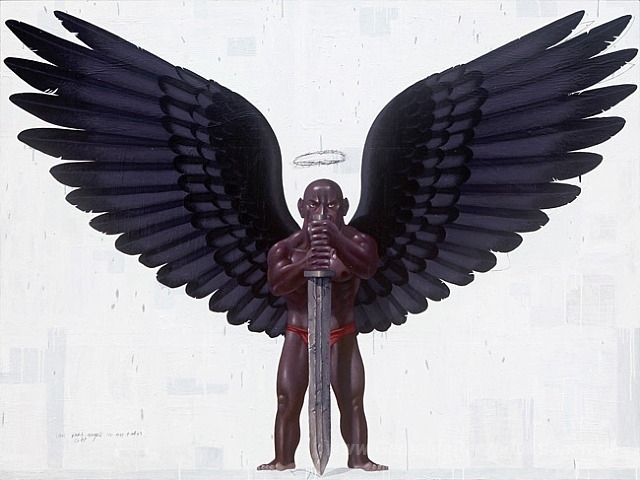 Wir bieten Ihnen eine handgefertigte Reproduktion auf Leinwand des berühmten Kunstwerks 'Dunkler Engel' von Nyoman Masriadi, aus dem Reproduktionsmuseum.