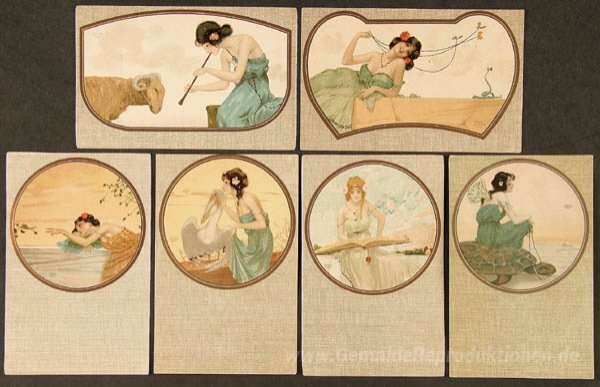 Wir bieten Ihnen eine handgefertigte Reproduktion auf Leinwand des berühmten Kunstwerks 'Fables' von Raphael Kirchner, aus dem Reproduktionsmuseum.