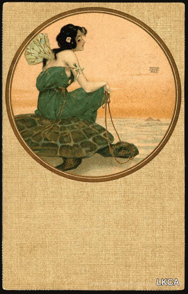 Wir bieten Ihnen eine handgefertigte Reproduktion auf Leinwand des berühmten Kunstwerks 'Fables' von Raphael Kirchner, aus dem Reproduktionsmuseum.