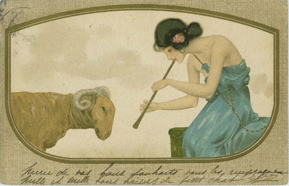 Wir bieten Ihnen eine handgefertigte Reproduktion auf Leinwand des berühmten Kunstwerks 'Fables' von Raphael Kirchner, aus dem Reproduktionsmuseum.