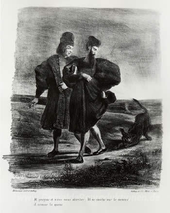 Wir bieten Ihnen eine handgefertigte Reproduktion auf Leinwand des berühmten Kunstwerks 'Faust, Goethes Tragödie' von Eugene Delacroix, aus dem Reproduktionsmuseum.