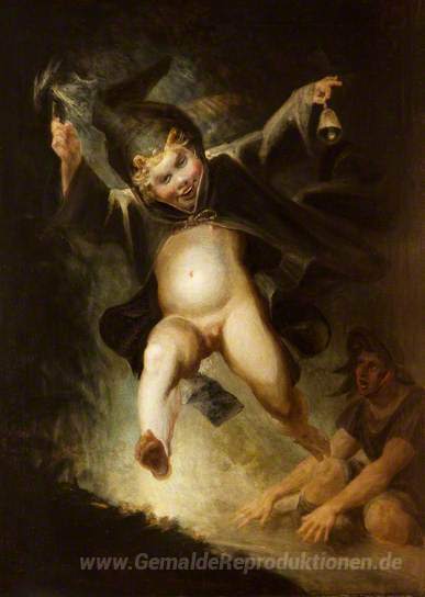 Wir bieten Ihnen eine handgefertigte Reproduktion auf Leinwand des berühmten Kunstwerks 'Friar Puck' von Henry Fuseli, aus dem Reproduktionsmuseum.