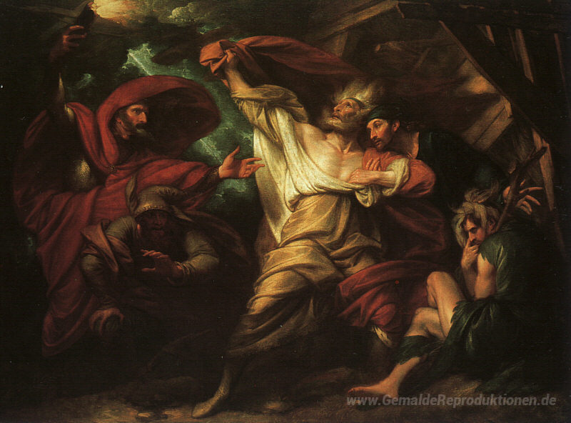 Wir bieten Ihnen eine handgefertigte Reproduktion auf Leinwand des berühmten Kunstwerks 'König Lear' von Benjamin West, aus dem Reproduktionsmuseum.