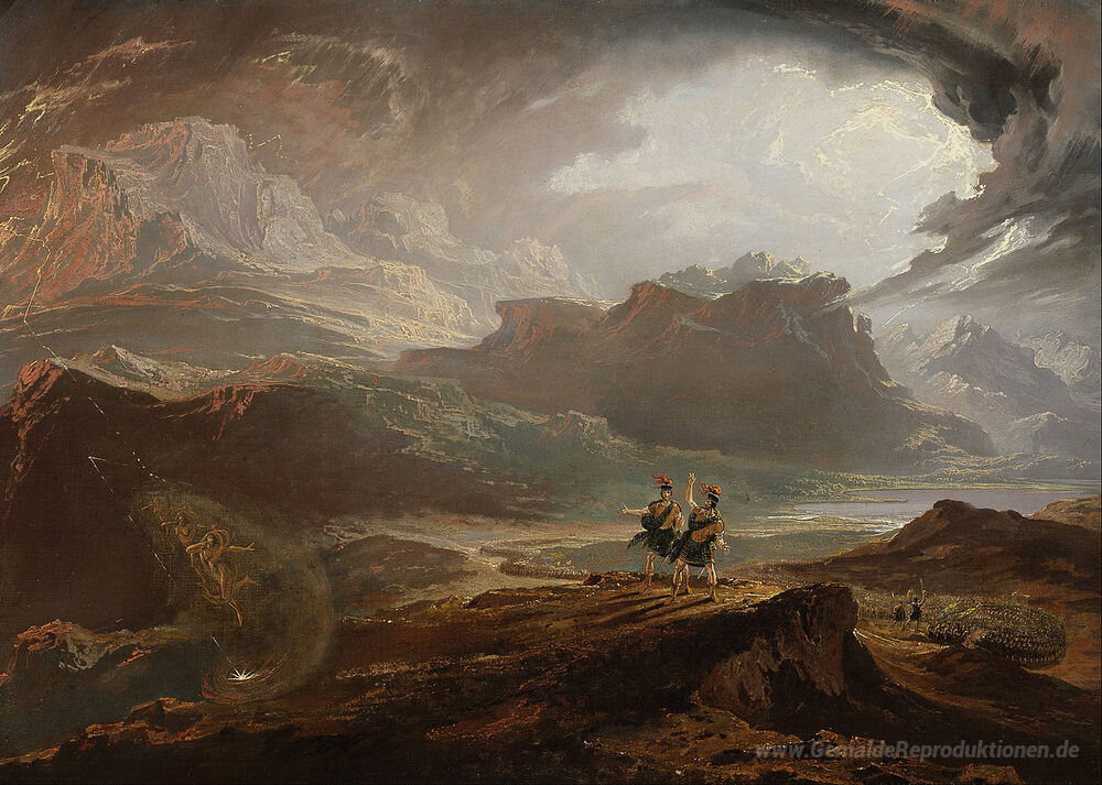 Wir bieten Ihnen eine handgefertigte Reproduktion auf Leinwand des berühmten Kunstwerks 'Macbeth' von John Martin, aus dem Reproduktionsmuseum.