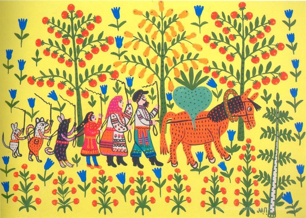Herzlich willkommen in unserer exklusiven Sammlung von Ölgemälden, die nicht nur die Wände Ihrer Räume bereichern, sondern auch Geschichten und Emotionen vermitteln. Eines der herausragenden Werke in unserer Galerie ist Ola Mann und alte Frau Tragen Sie eine Rübe, geschaffen von der talentierten Künstlerin Maria Primachenko. Dieses Bild vereint folkloristische Elemente mit einer lebendigen Farbpalette und fesselnden Formen, die das Wesen der ukrainischen Kultur perfekt einfangen.