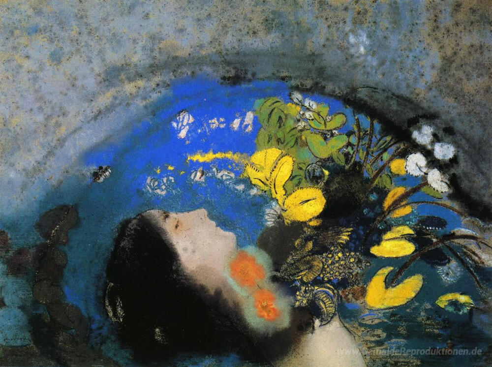 Wir bieten Ihnen eine handgefertigte Reproduktion auf Leinwand des berühmten Kunstwerks 'Ophelia' von Odilon Redon, aus dem Reproduktionsmuseum.